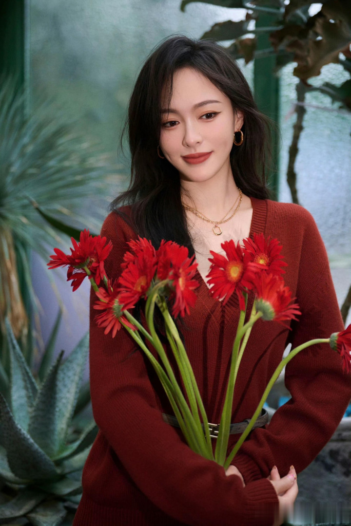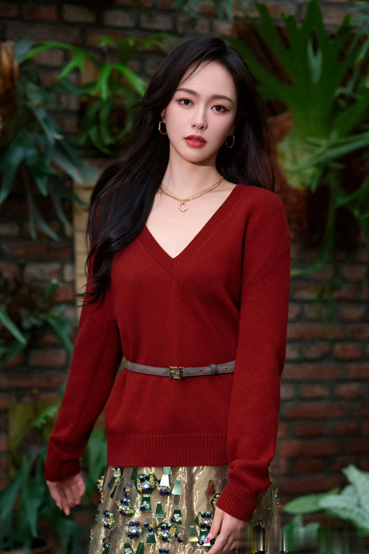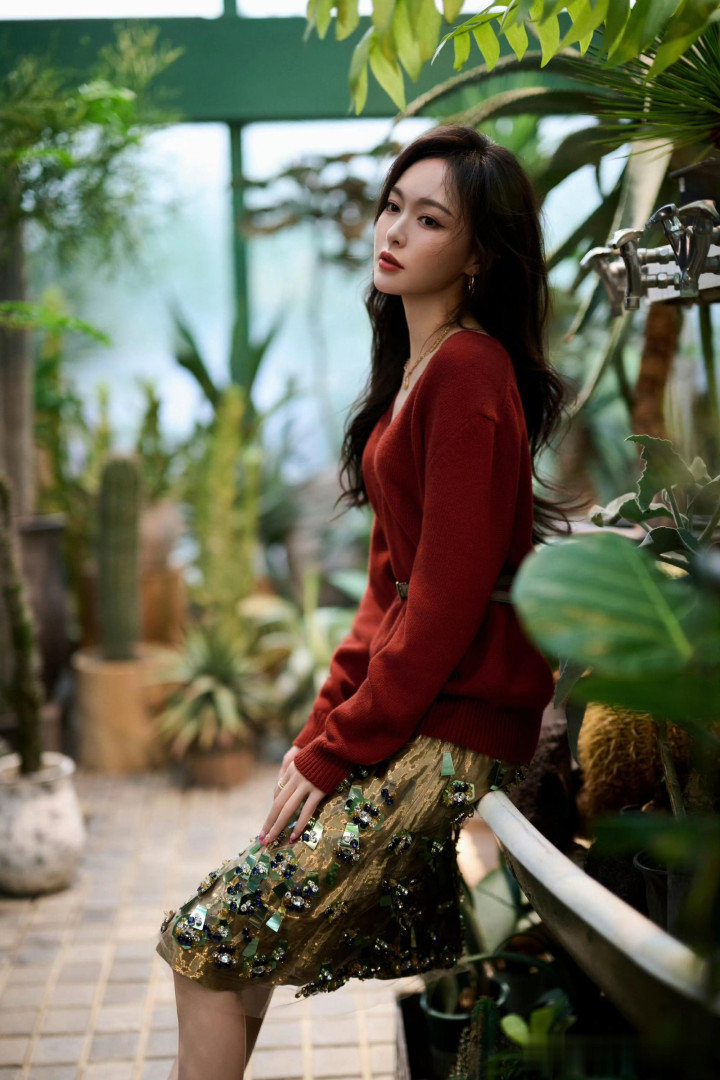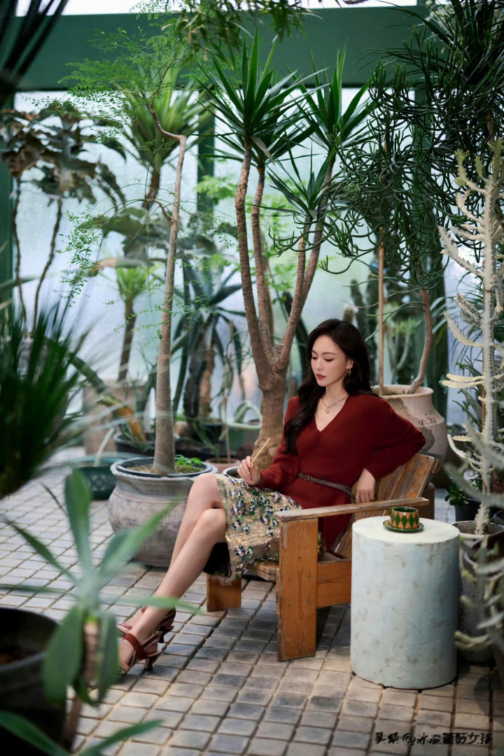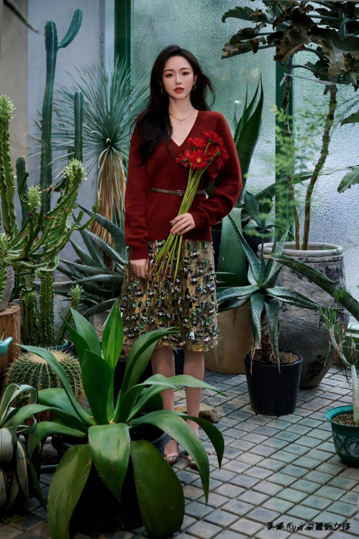 唐嫣红衫配花裙, 植物园里的复古缪斯