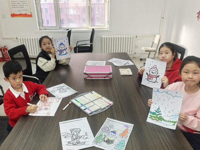 地图绘制的过程,是一场全民参与的“家乡告白”。松江社区发出招募令后,绘画爱好者、青少年纷纷响应,一支“绘图小分队”迅速组建起来。大家把心中的家乡冰雪风貌展现在纸上,绘图现场变成了创意碰撞的乐园:网格员岩岩负责整体构图和线条勾勒,确保地图比例精准、画面美观;孩子们发挥想象力,在角落画上雪人、雪花等卡通元素,增添趣味性。“每一笔都想画得认真些,因为这是送给游客的‘见面礼’,也是我们对家乡的热爱。”绘图队员徐姐的话,道出大家的心声。最终,一幅带着温度的“手绘地图”终于完成,画面上既有哈尔滨冰雪大世界、中央大街等知名地标,也有社区周边的小众打卡点,实用信息与人文风情兼备。